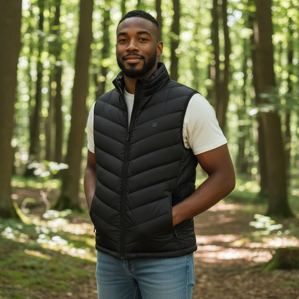 Chaleco calefactable de corte moderno con calentadores estratégicos, control fácil de 3 niveles y bolsillo seguro para batería. Tejido cortaviento y forro suave que retienen el calor sin añadir volumen. Perfecto para excursiones, trabajo al aire libre o uso urbano en días fríos.